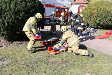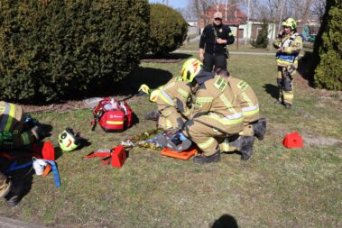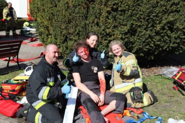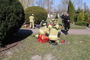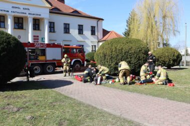 Do symulowanego pożaru zostało wezwanych 5 jednostek OSP z terenu gminy Lututów: Lututów, Chojny, Piaski, Niemojew i Huta. Było to ogromne zaskoczenia zarówno dla całej społeczności szkolnej jak i samych strażaków. Alarm próbny przebiegał bardzo sprawnie, a druhowie strażacy zademonstrowali młodzieży, ćwicząc jednocześnie, sposoby i techniki udzielania pomocy poszkodowanym.